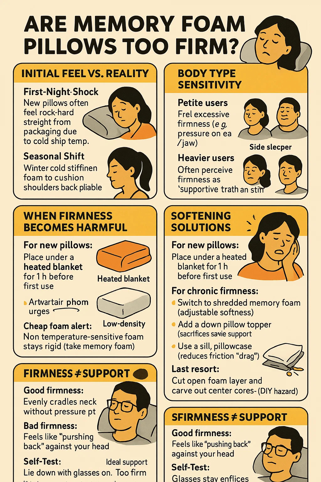 Til kronisk fasthed: → Skift til strimlet hukommelseskum (justerbar blødhed). → Tilføj en dun pude topper (ofrer lidt støtte). → Brug en silkepudebetræk (reducerer friktion "træk").