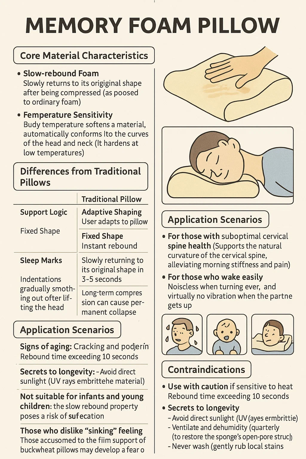 | Funktion | Hukommelsesskumpude | Traditionel pude (polyfill / ned) |